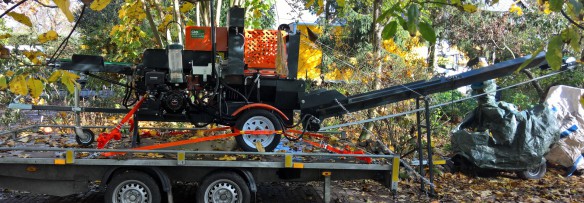 Verarbeitet werden Stämme bis 40cm Durchmesser.